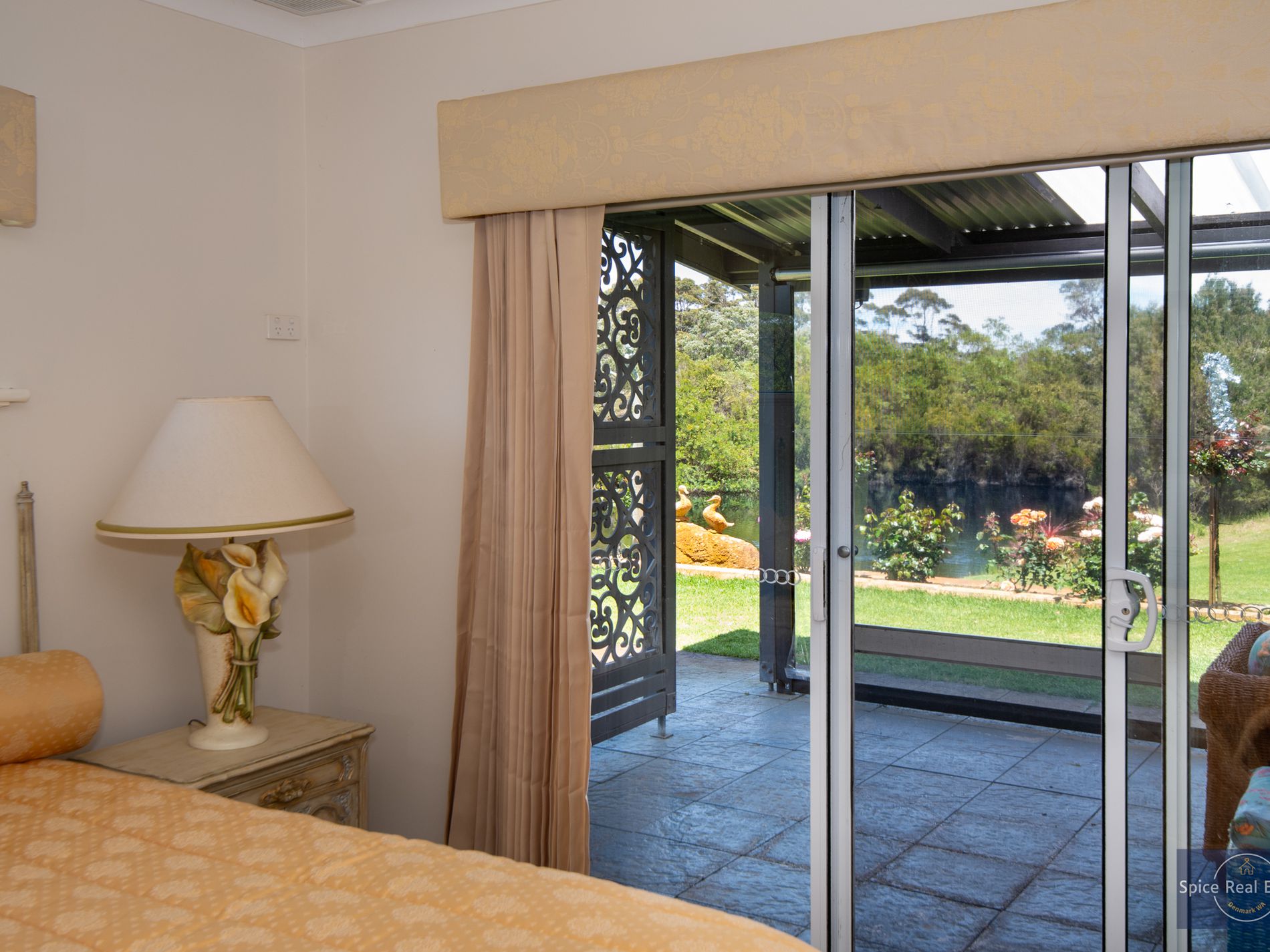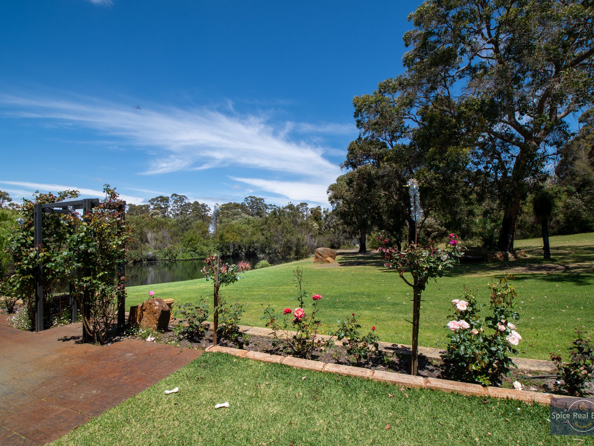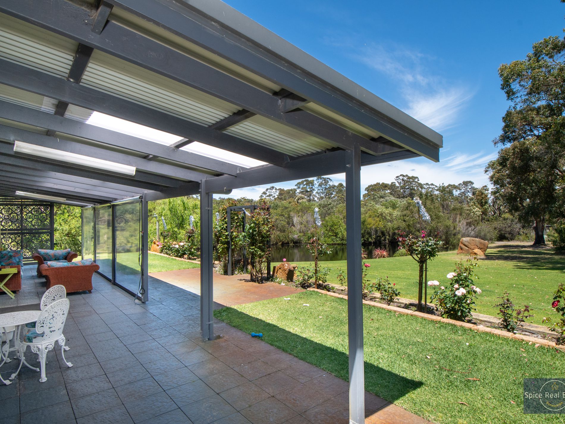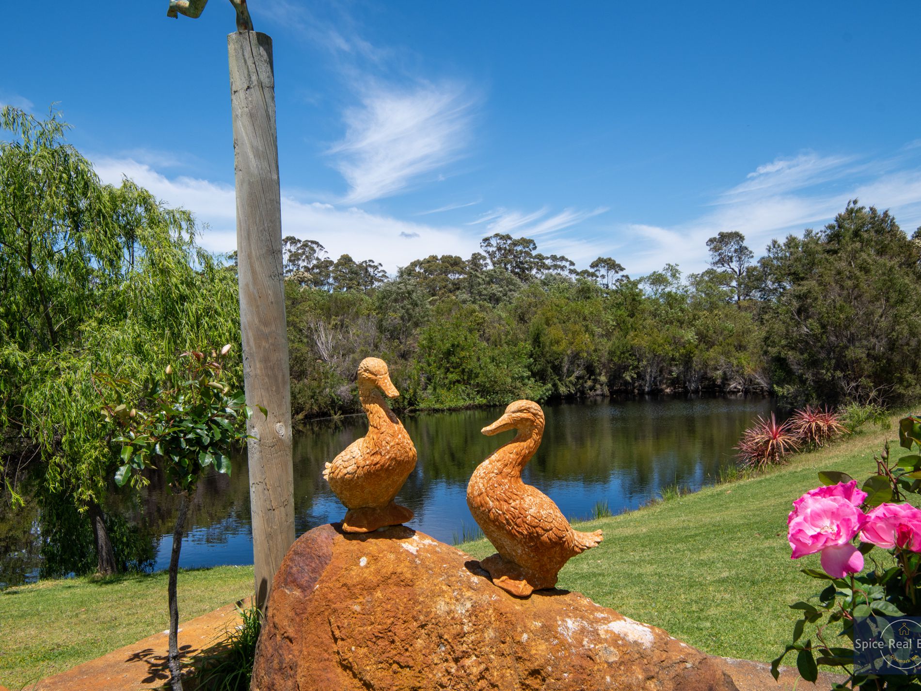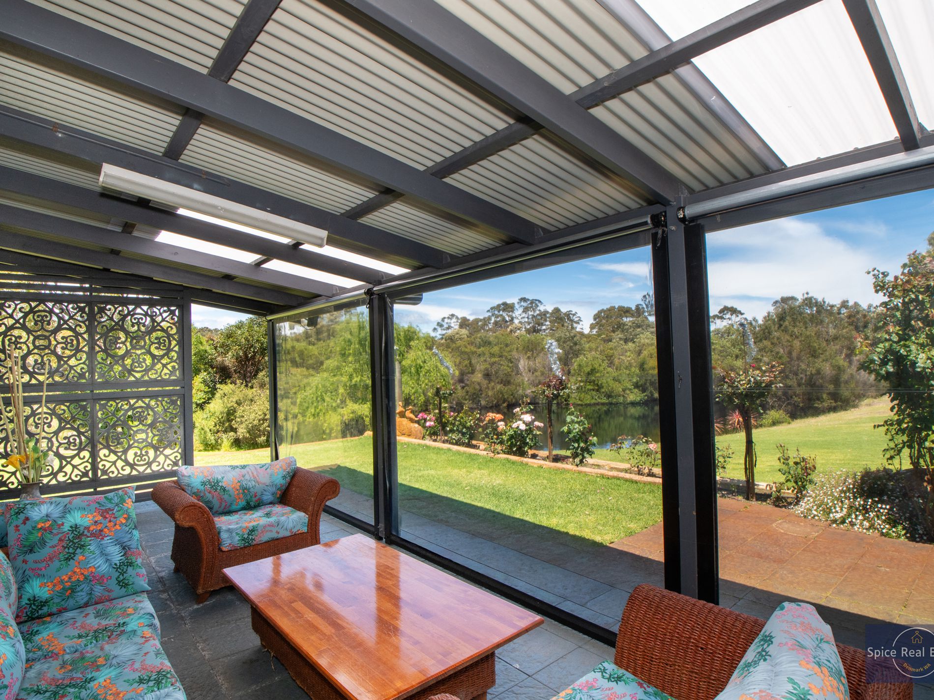Outdoors, the property continues to impress. The lawns and gardens are reticulated from a bore, ensuring they stay lush and green with minimal effort. The patio area has been designed for year-round enjoyment, offering a sheltered and welcoming space to relax or entertain while overlooking the dam and surrounding landscape. Thoughtful solar lighting adds a warm glow to the garden and highlights the tranquil water views at dusk.